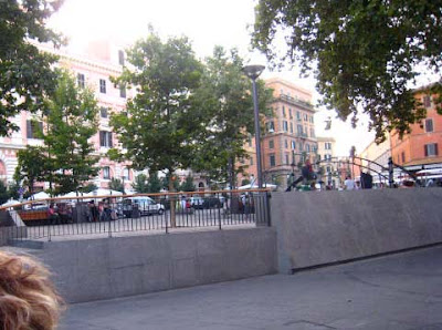 Although the Piazza is a bit of an anachronism in this ancient part of Rome, it works. The market is thriving and children play safely in the playground while their parents sit and drink coffee or wine at the nearby bars. Which is exactly what we did.